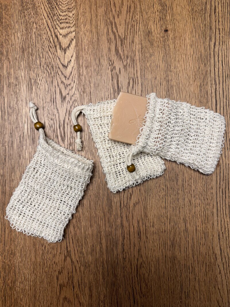 Sacchetto porta sapone in sisal, fibra vegetale ecologica molto resistente ideale per esfoliare la pelle.